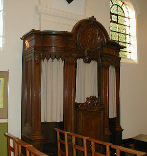 Over de H. Zending waarbij een drietal paters van op de kansel de massaal vergaderde parochiegemeenschap willen aanzetten tot "bekeeringhe van hun zondig leven" Totaal niet uit te leggen aan de hedendaagse jeugd. Bij een rondgang in de kerk als volwassen begeleider van een communicant kon slechts één snuggere meid op mijn vraag naar het stuk kerkmeubilair antwoorden : een biechtkotje, de rest wist niet waarvoor dit diende. En dan te bedenken dat er zo niet minder dan 5 stuks in de kerk van zulke kleine plattelandsparochie staan. En in onze tijd was het bij hoogtijden nog "rootje" volgen !!!